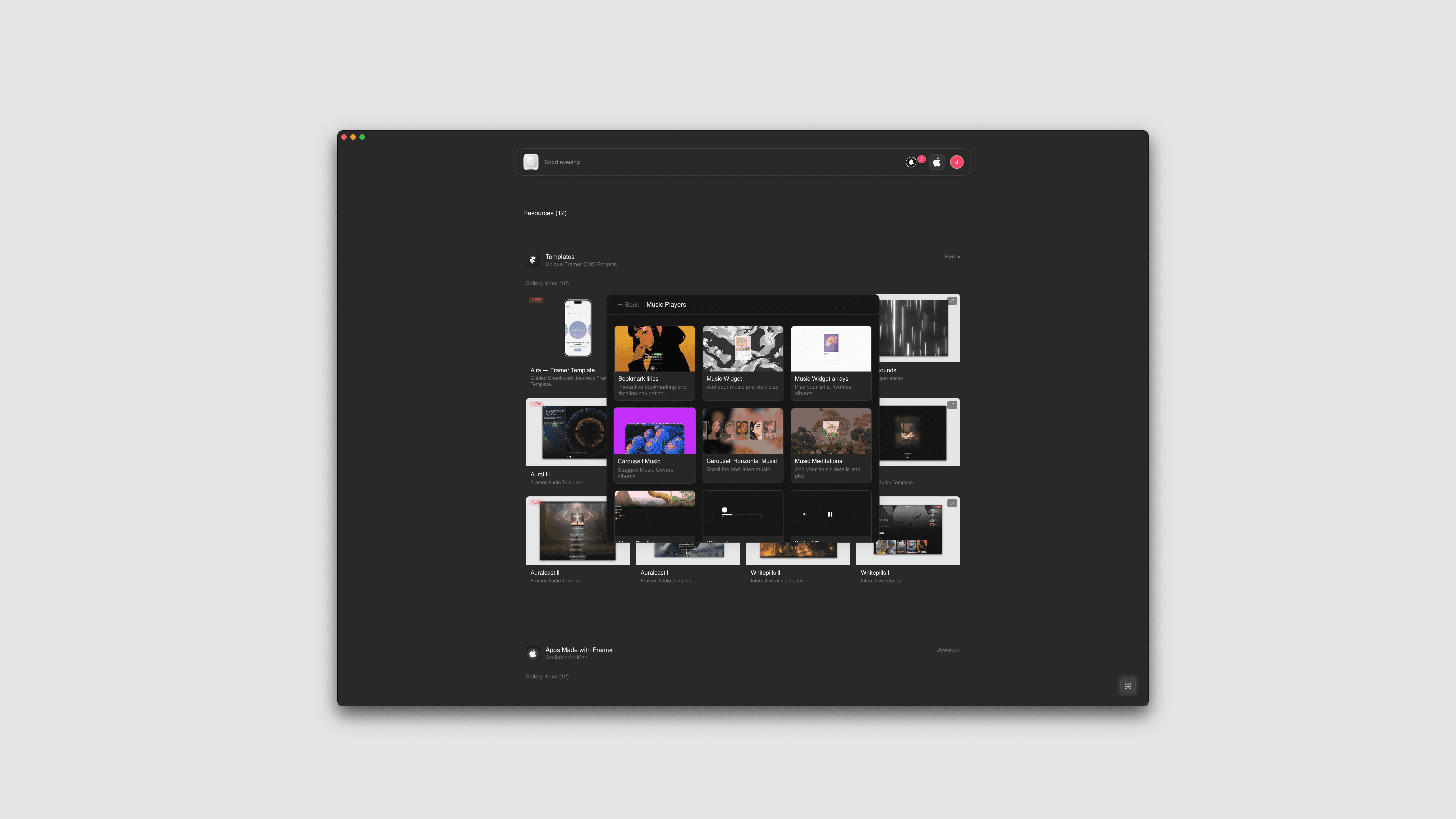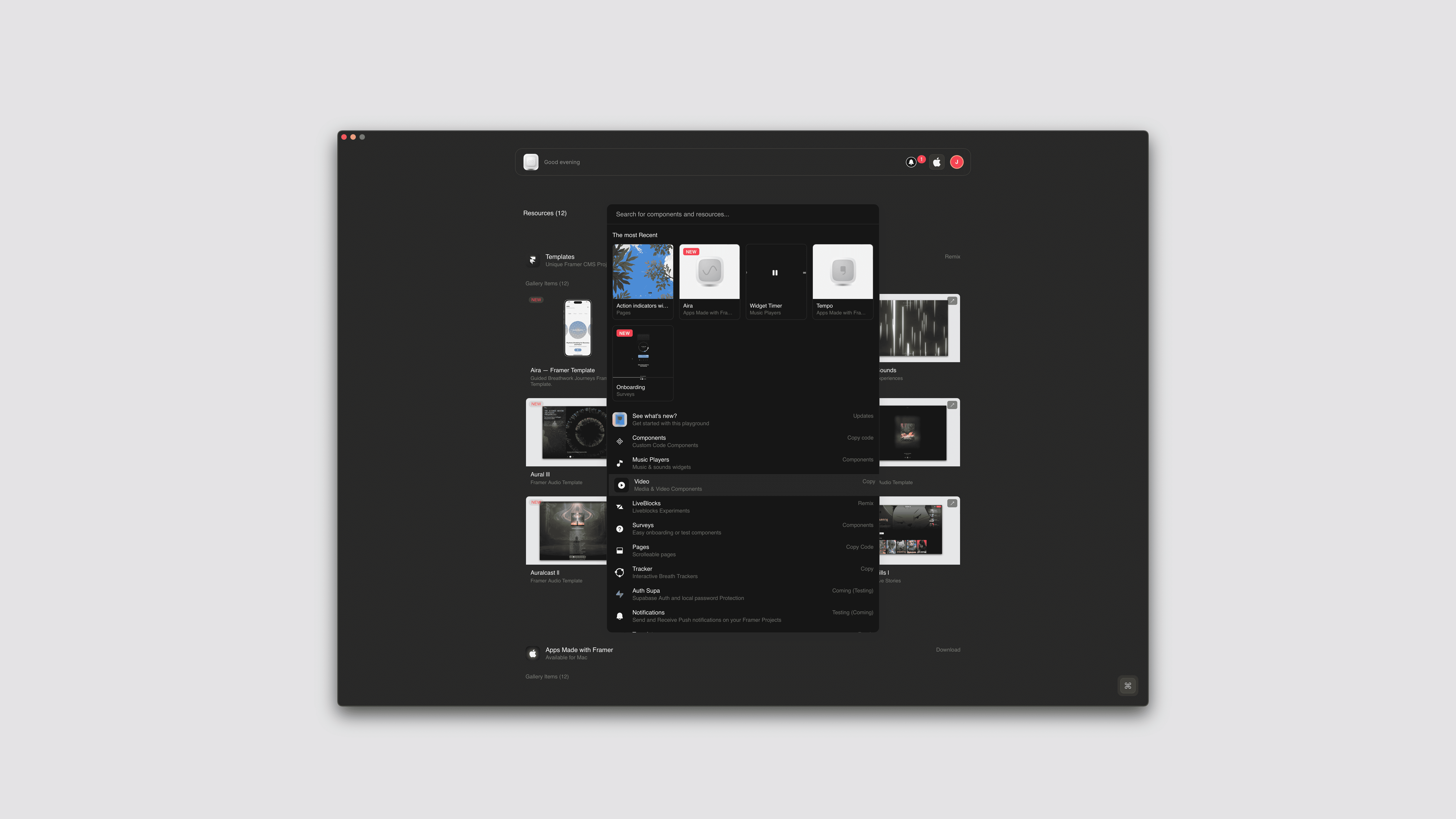 A space where users can experiment with completed and in-progress projects. Constant updates with new resources and Framer explorations.