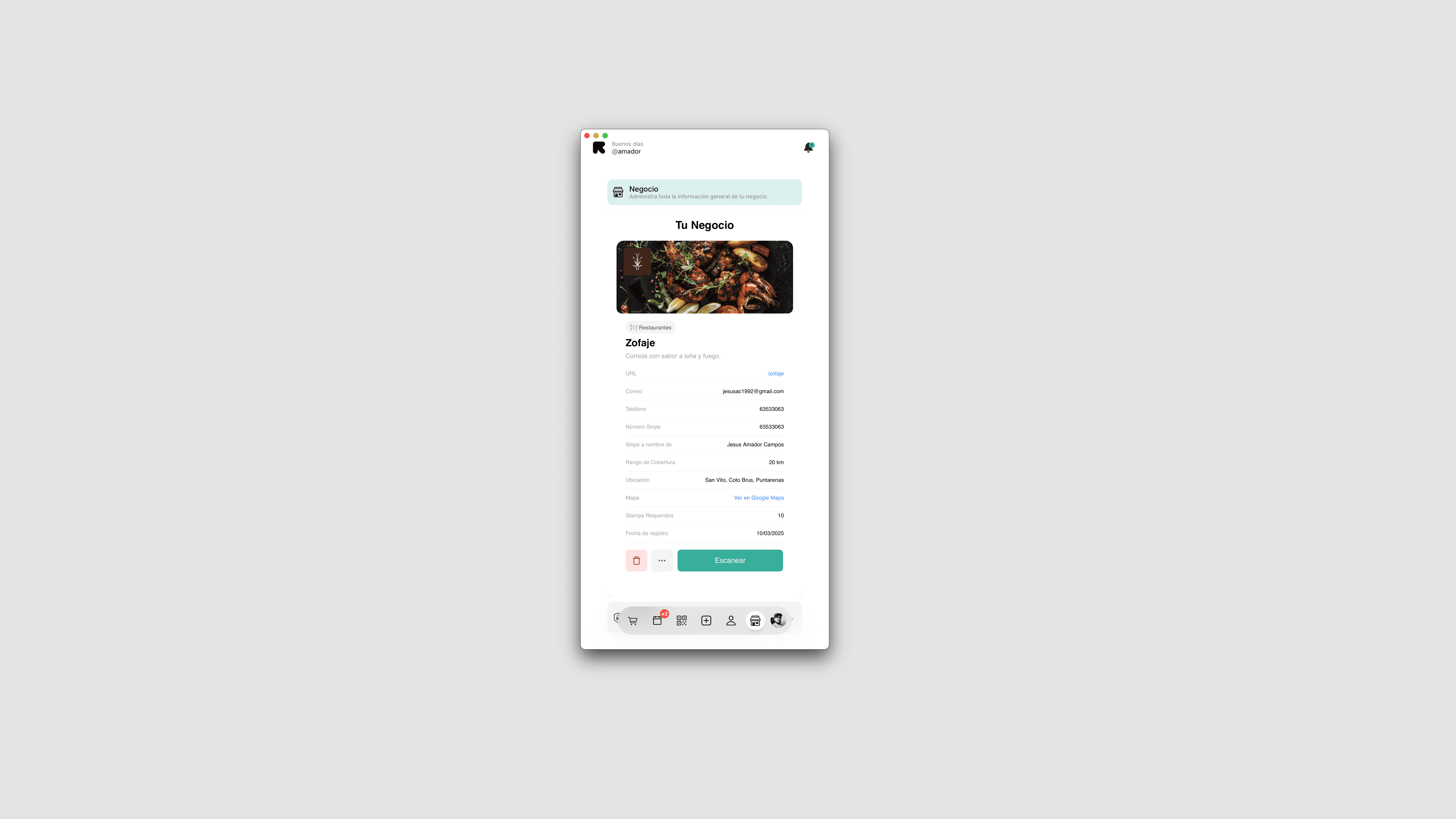 An admin panel where business owners can: Register their business and customize their rewards program. View statistics on customer activity.